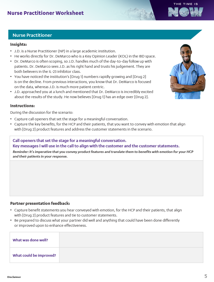 Create a branded PowerPoint presentation for a sales representative workshop. The 'Notes Pages' must be printable: some will be used for facilitator guidance; others will be distributed to participants to fill in.