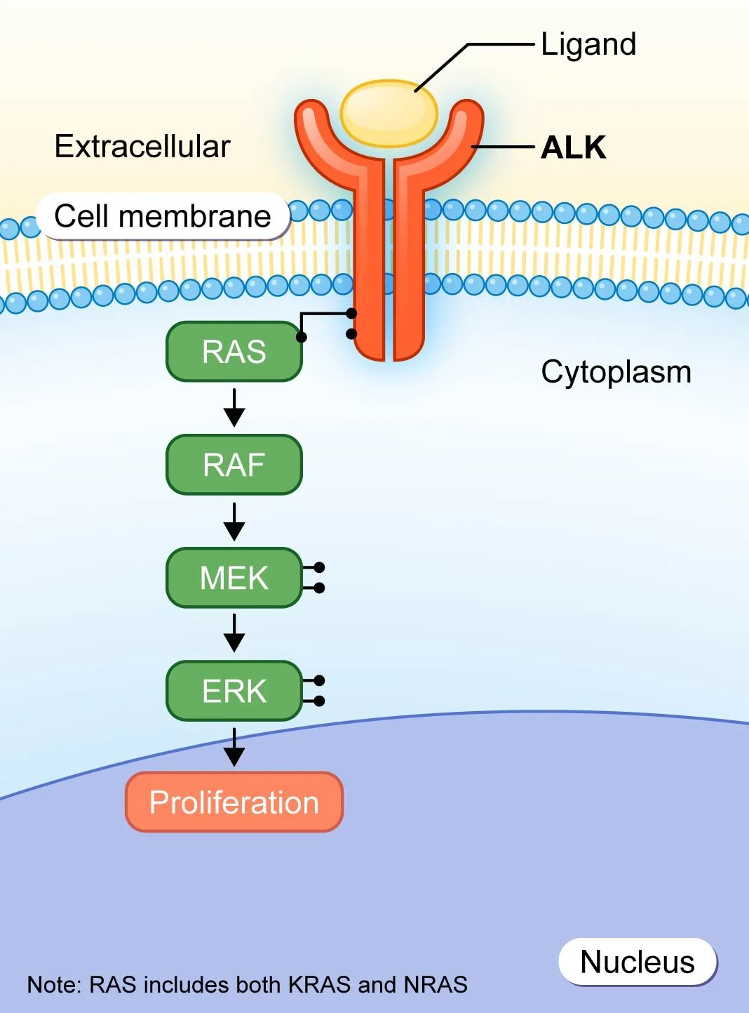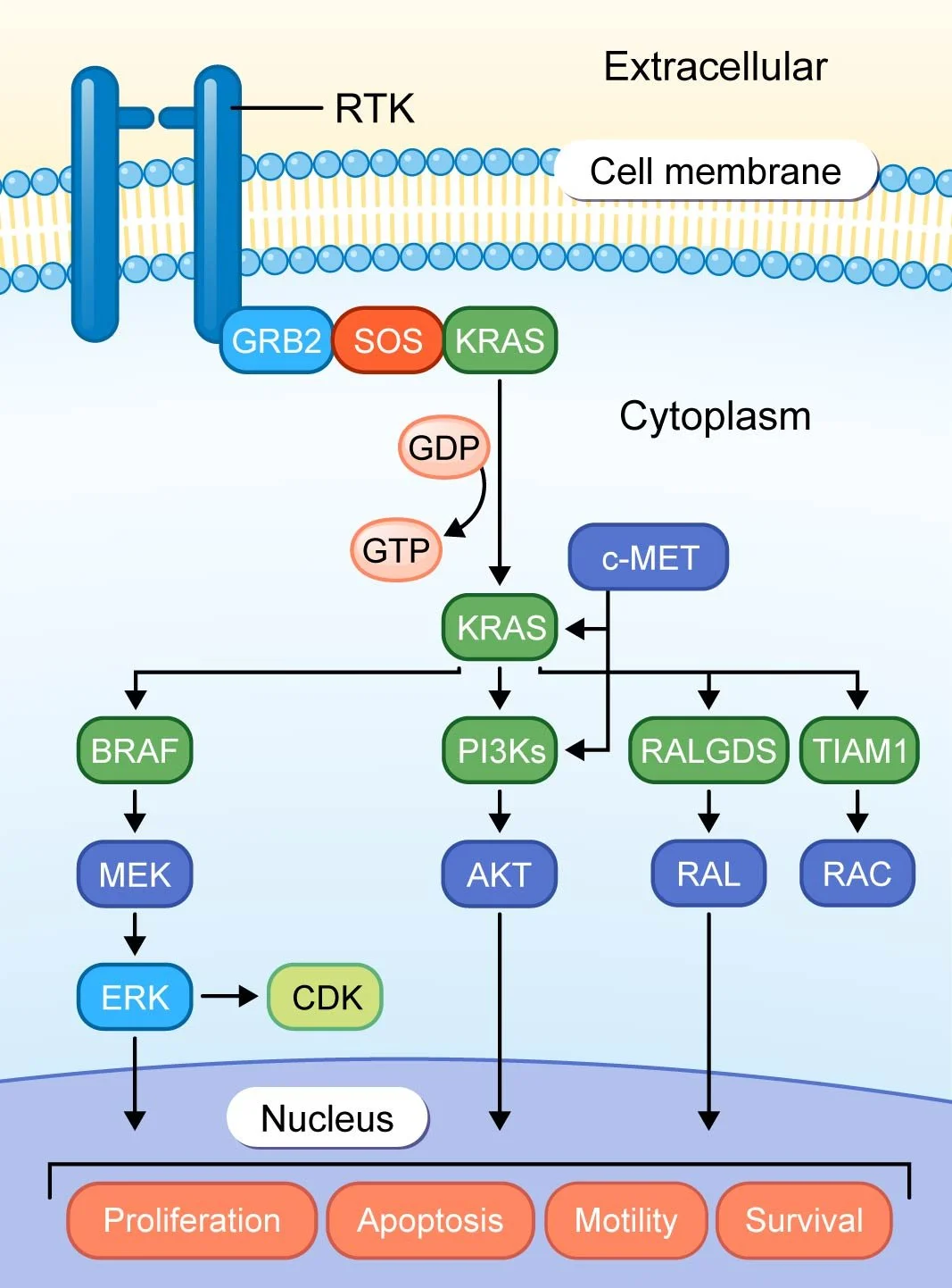 Create a series of illustrations that show the signaling pathways of receptor tyrosine kinases (RTKs) that are involved in non-small cell lung cancer (NSCLC).